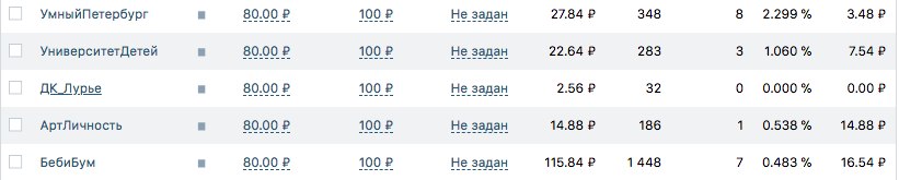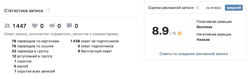 Подписчики с формата «Продвижение сообществ» получались по 8 рублей. Это неплохо, но задачи сбора подписчиков не стояло.