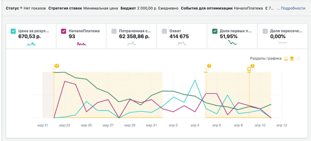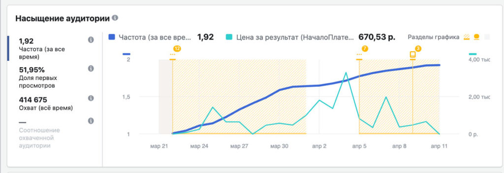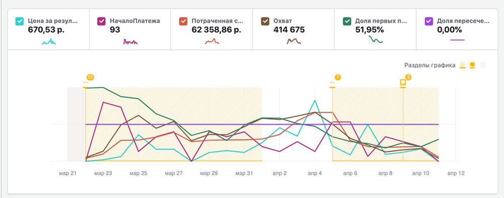 Так можно планировать изменения в кампании, еще до того, как цифры успели просесть. Ну и понять, что нам нужно поменять — проще.