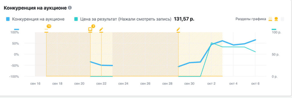 Этот график поможет понять, связано ли повышение цены за целевое действие с повышением конкуренции на аукционе.