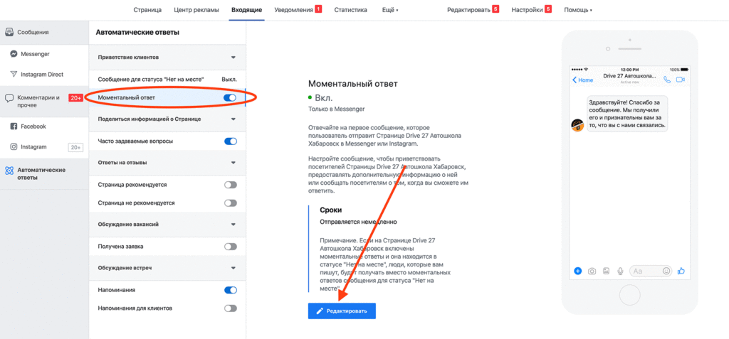 До недавнего времени, чтобы подключить автоответы или приветственное сообщение подписчикам, нам нужно было использовать сторонние сервисы. Это неудобно, требует дополнительных затрат и карается Фейсбуком примерно как массфоловинг или масслайкинг.