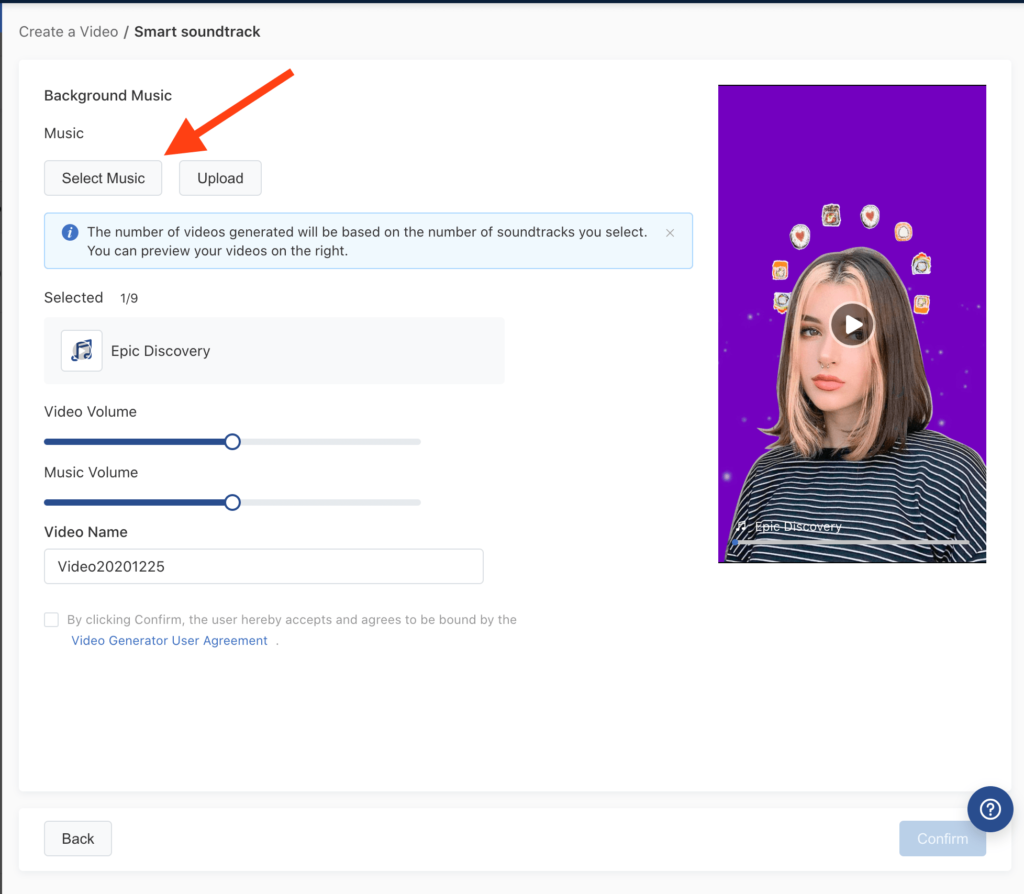 Вот тут выбираем понравившейся трек и загружаем видео в рекламный кабинет.