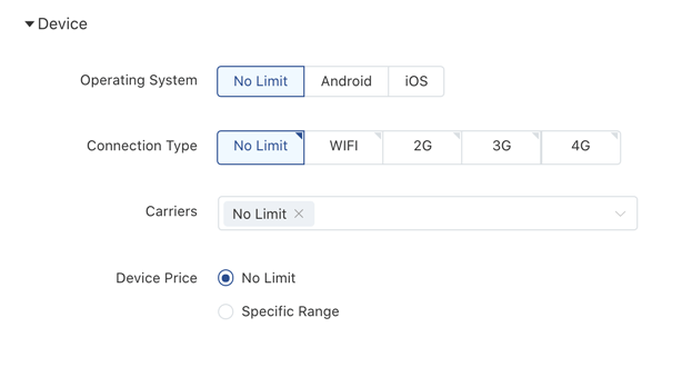 В поле «Device» мы можем выбрать устройства, с которых сидит наша аудитория.