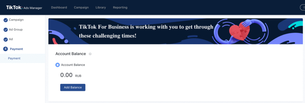 У TikTok есть свой рекламный кабинет. Там пока мало рекламодателей и еще дешевый трафик, что делает площадку перспективной для рекламодателей. Вот тут можете почитать о создании креативов для ТикТок рекламы.