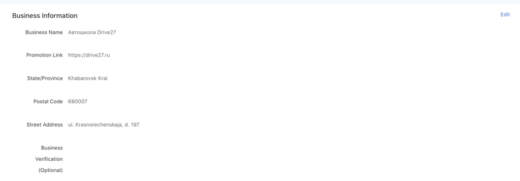 В Legal Name of Business — название компании так, как написано в документах. ИП или ООО тоже надо включать, предварительно перевести на английский
