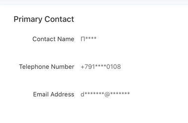— Дальше идет блок «Primary contact». Заполнем имя, телефон и емейл контактного лица