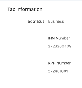 — В блоке «Tax Information» заполняем ИНН и КПП
