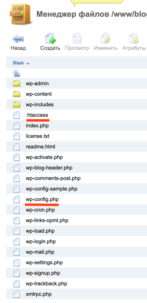 Находим корень сайта. Там должны быть файлы .htaccess, wp-config