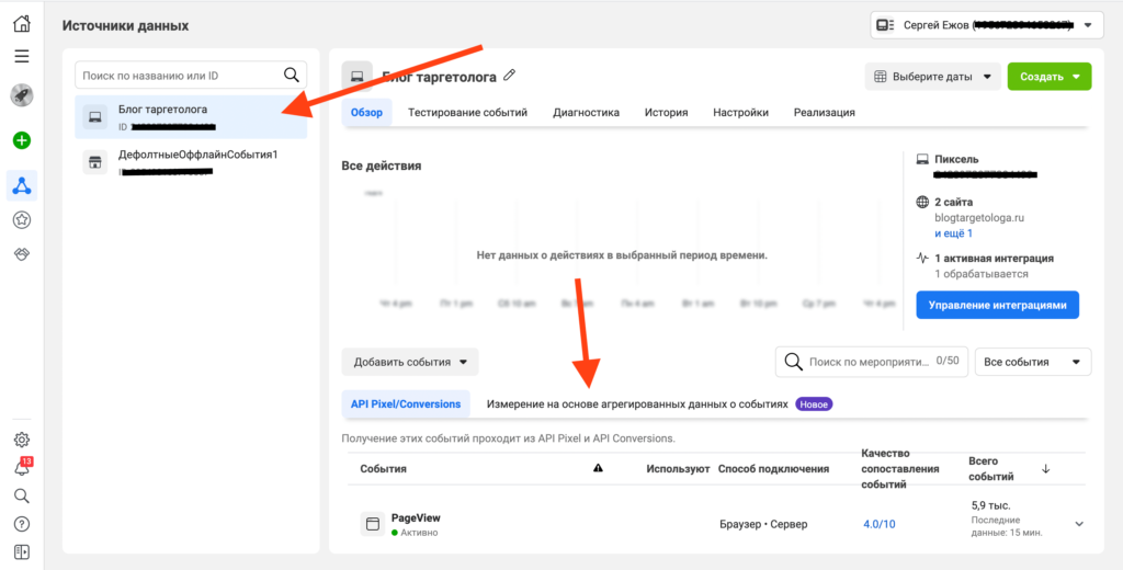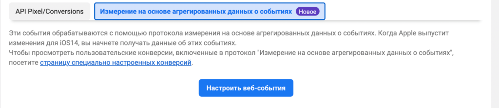 Выбираем наш пиксель. Нажимаем «Измерение на основе агрегированных данных о событиях»
