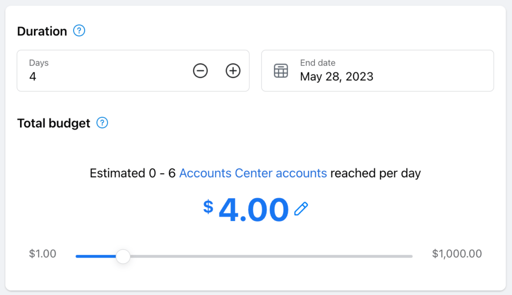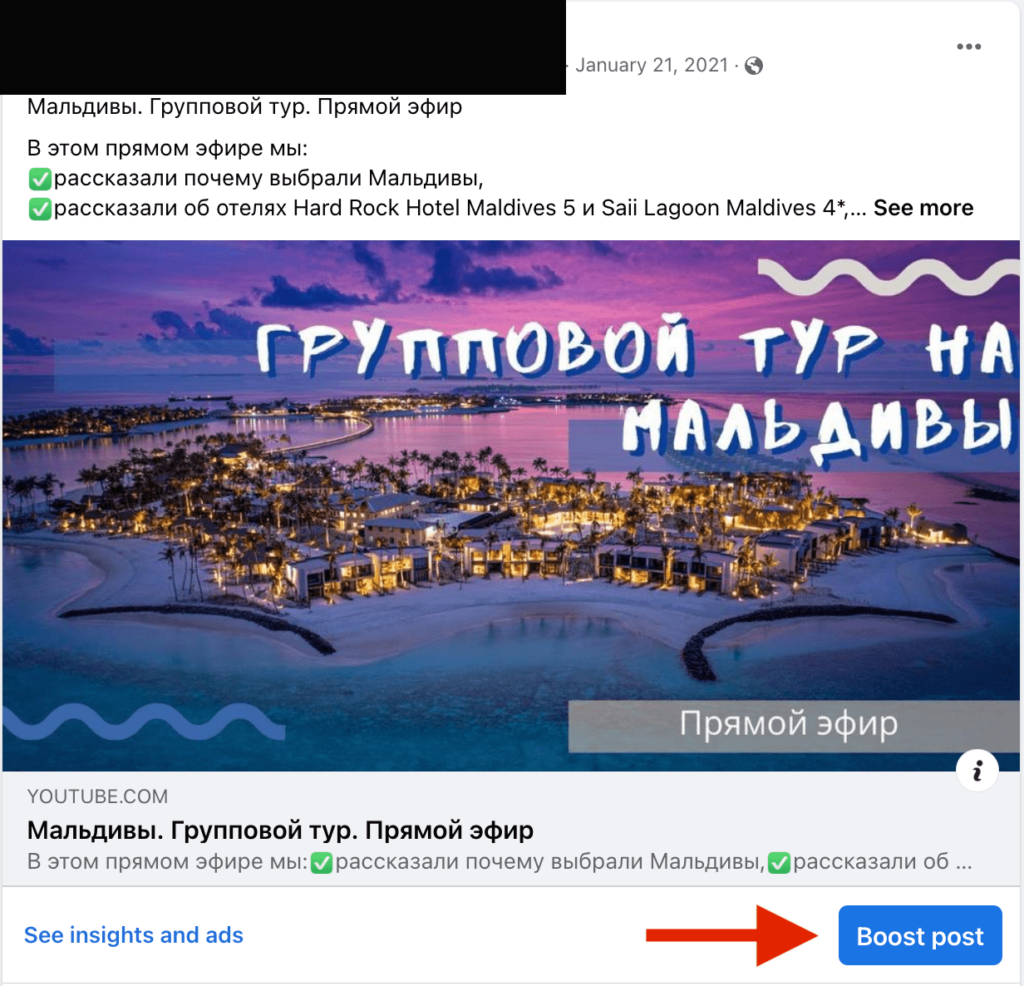 Запускаем любой пост с минимальным бюджетом на 4 дня.
